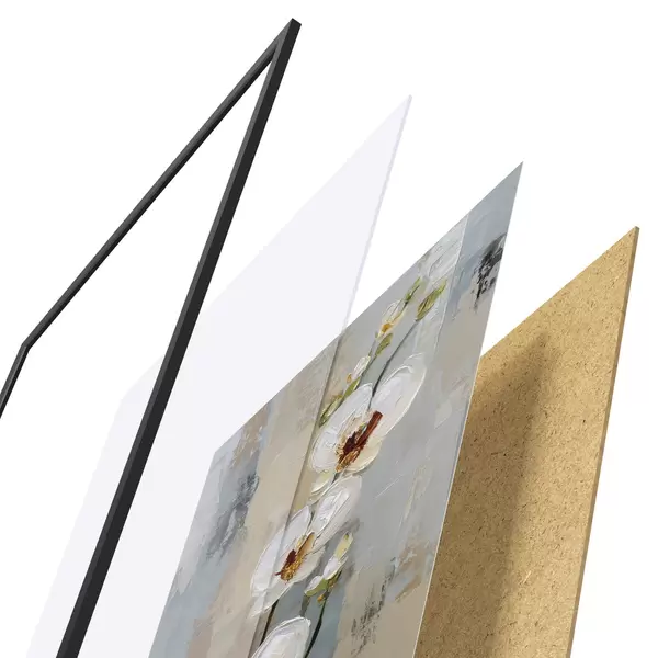 Plakatą sudaro rėmas, pleksiklas, atspausdintas vaizdas ir medžio drožlių plokštės pagrindas. Plakatą galima iš karto pakabinti ant sienos dėl kitoje pusėje esančių laikiklių.