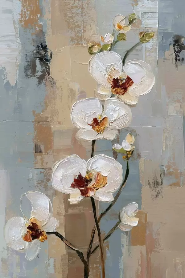 Plakatas baltos orchidėjos gėlės aliejaus tapybos stiliumi Ne f47131
