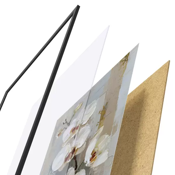 Plakatą sudaro rėmas, pleksiklas, atspausdintas vaizdas ir medžio drožlių plokštės pagrindas. Plakatą galima iš karto pakabinti ant sienos dėl kitoje pusėje esančių laikiklių.