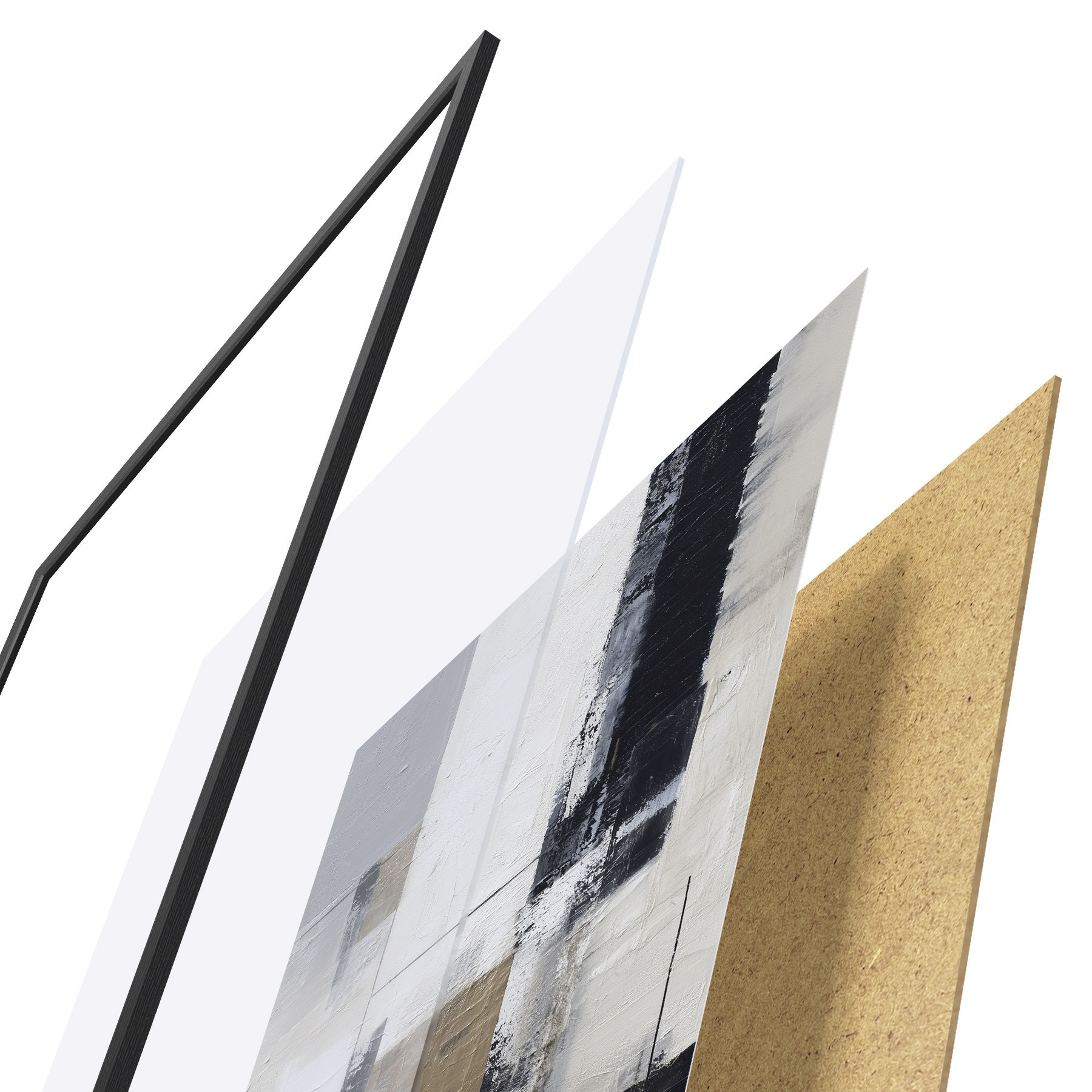 Plakatą sudaro rėmas, pleksiklas, atspausdintas vaizdas ir medžio drožlių plokštės pagrindas. Plakatą galima iš karto pakabinti ant sienos dėl kitoje pusėje esančių laikiklių.