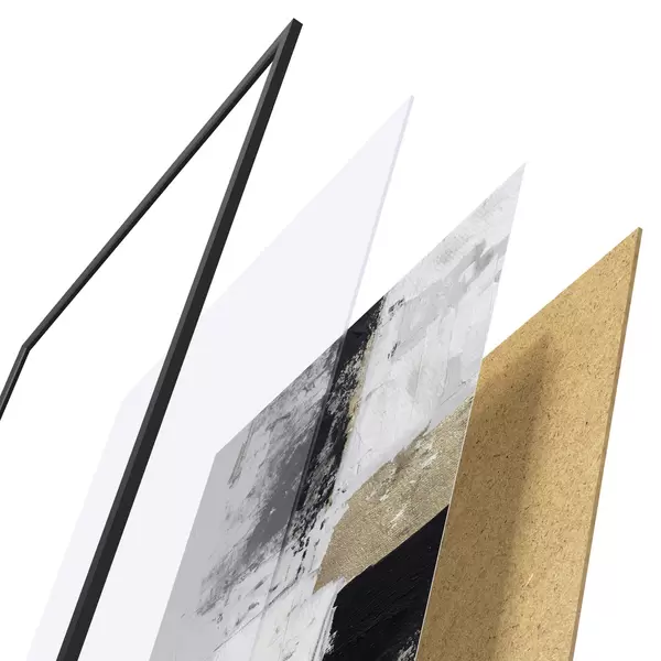 Plakatą sudaro rėmas, pleksiklas, atspausdintas vaizdas ir medžio drožlių plokštės pagrindas. Plakatą galima iš karto pakabinti ant sienos dėl kitoje pusėje esančių laikiklių.