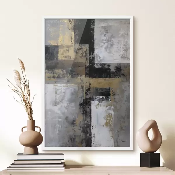 Plakatas šiuolaikinė tekstūrinė abstrakcija juodos, pilkos ir baltos spalvų atspalviais f47139