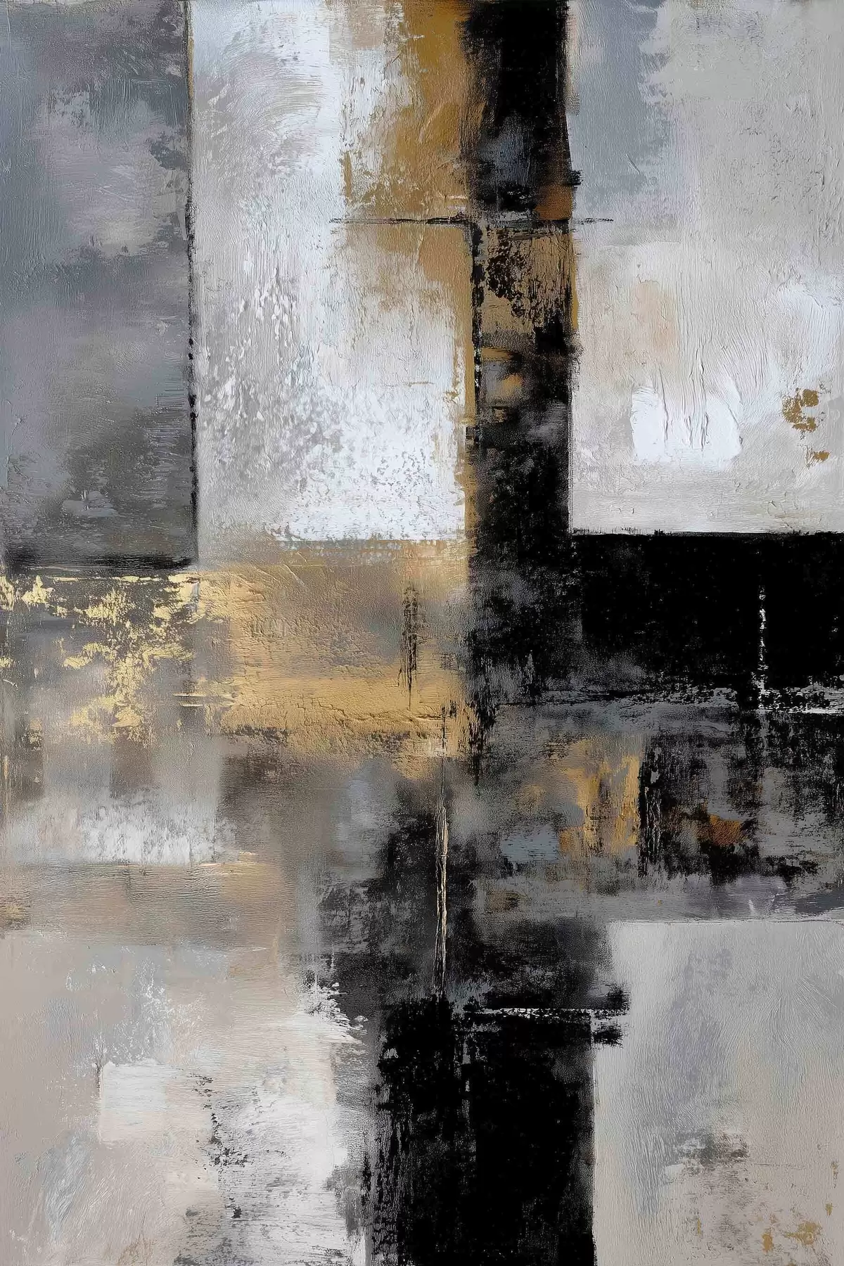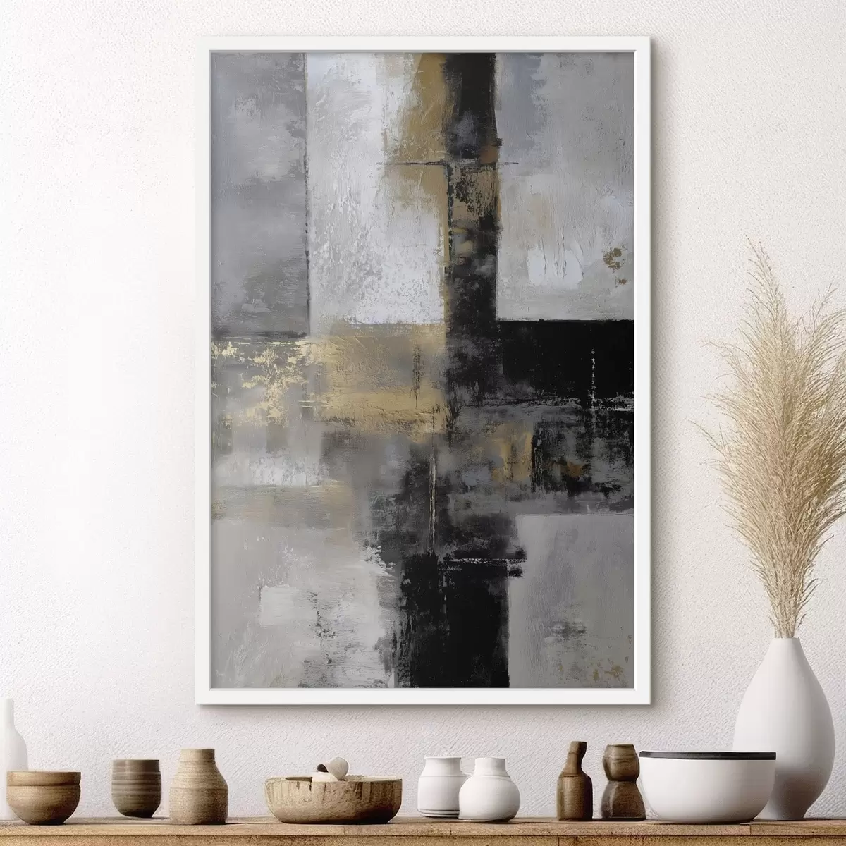 Plakatas šiuolaikinė tekstūrinė abstrakcija juodos, pilkos ir baltos spalvų atspalviais f47140