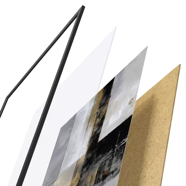 Plakatą sudaro rėmas, pleksiklas, atspausdintas vaizdas ir medžio drožlių plokštės pagrindas. Plakatą galima iš karto pakabinti ant sienos dėl kitoje pusėje esančių laikiklių.