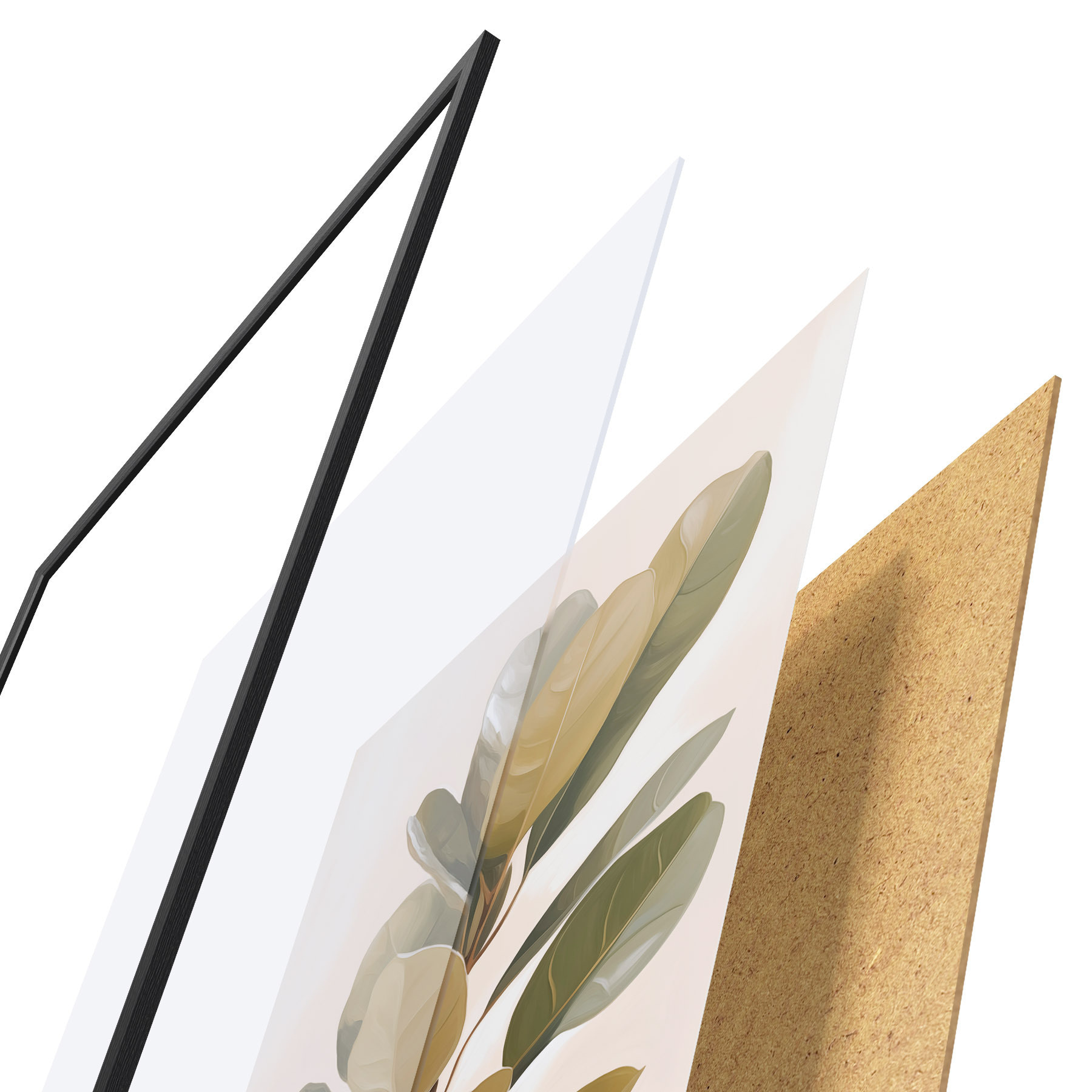 Plakatą sudaro rėmas, pleksiklas, atspausdintas vaizdas ir medžio drožlių plokštės pagrindas. Plakatą galima iš karto pakabinti ant sienos dėl kitoje pusėje esančių laikiklių.