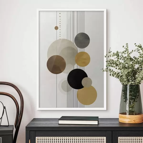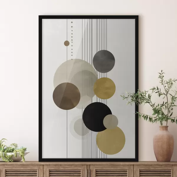 Plakatas abstrakcija su apskritimais ir linijomis šiltomis spalvomis Ne f47237