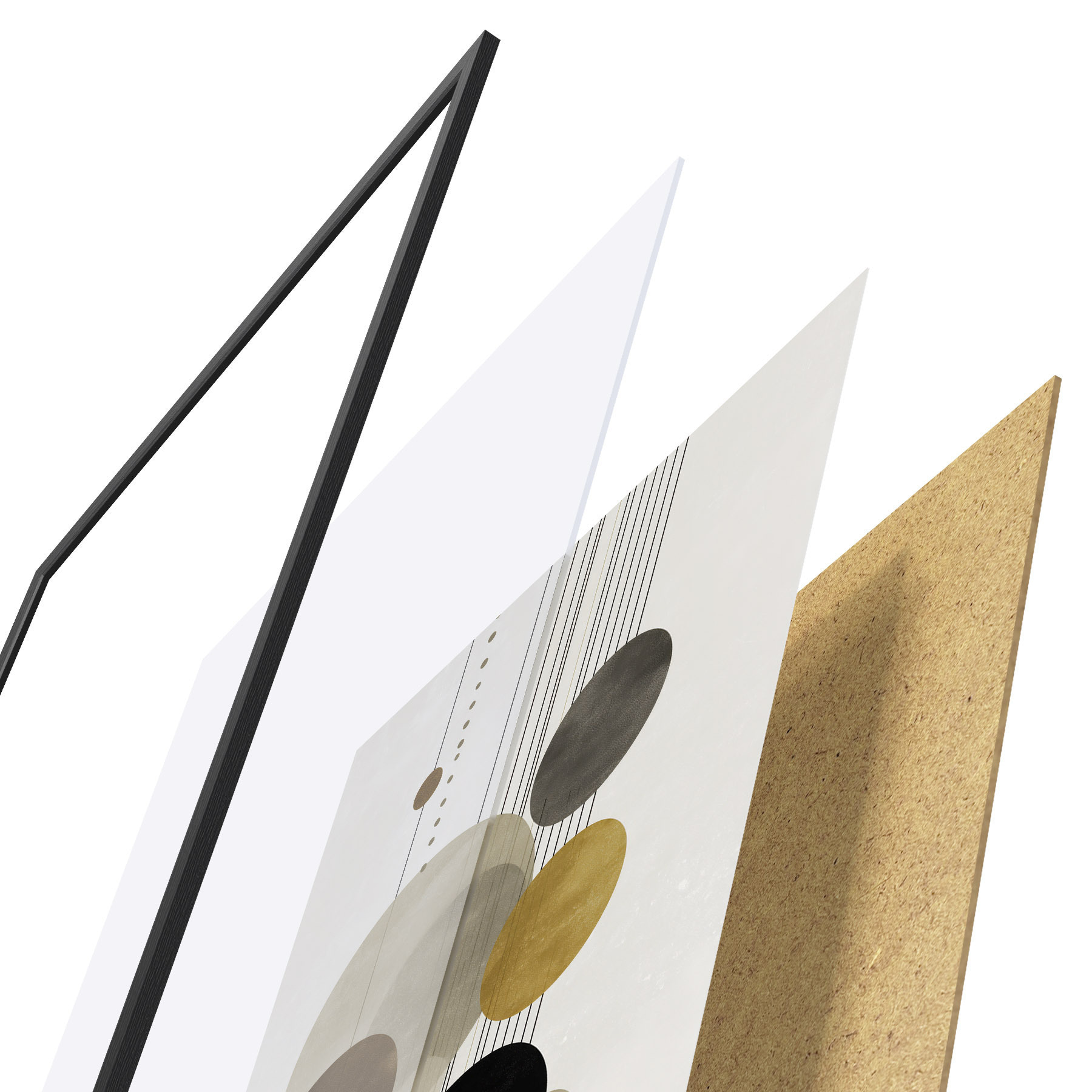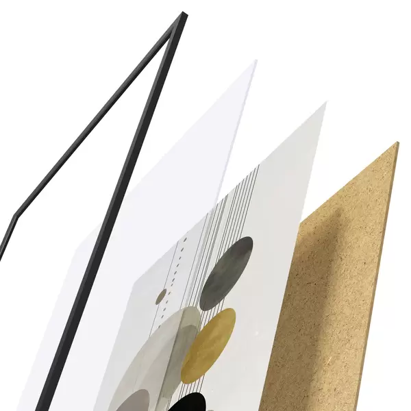 Plakatą sudaro rėmas, pleksiklas, atspausdintas vaizdas ir medžio drožlių plokštės pagrindas. Plakatą galima iš karto pakabinti ant sienos dėl kitoje pusėje esančių laikiklių.