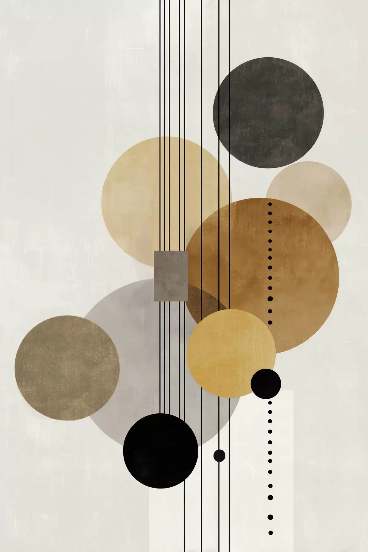 Plakatas abstrakcija su apskritimais ir linijomis šiltomis spalvomis Ne f47238
