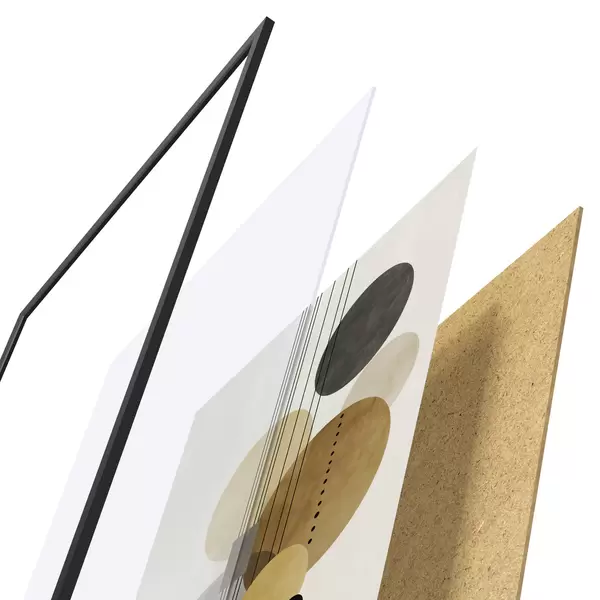 Plakatą sudaro rėmas, pleksiklas, atspausdintas vaizdas ir medžio drožlių plokštės pagrindas. Plakatą galima iš karto pakabinti ant sienos dėl kitoje pusėje esančių laikiklių.