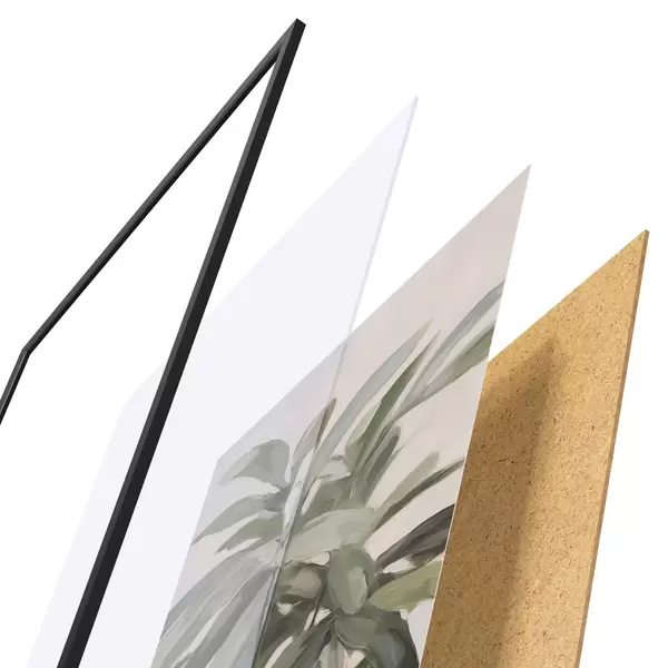 Plakatą sudaro rėmas, pleksiklas, atspausdintas vaizdas ir medžio drožlių plokštės pagrindas. Plakatą galima iš karto pakabinti ant sienos dėl kitoje pusėje esančių laikiklių.