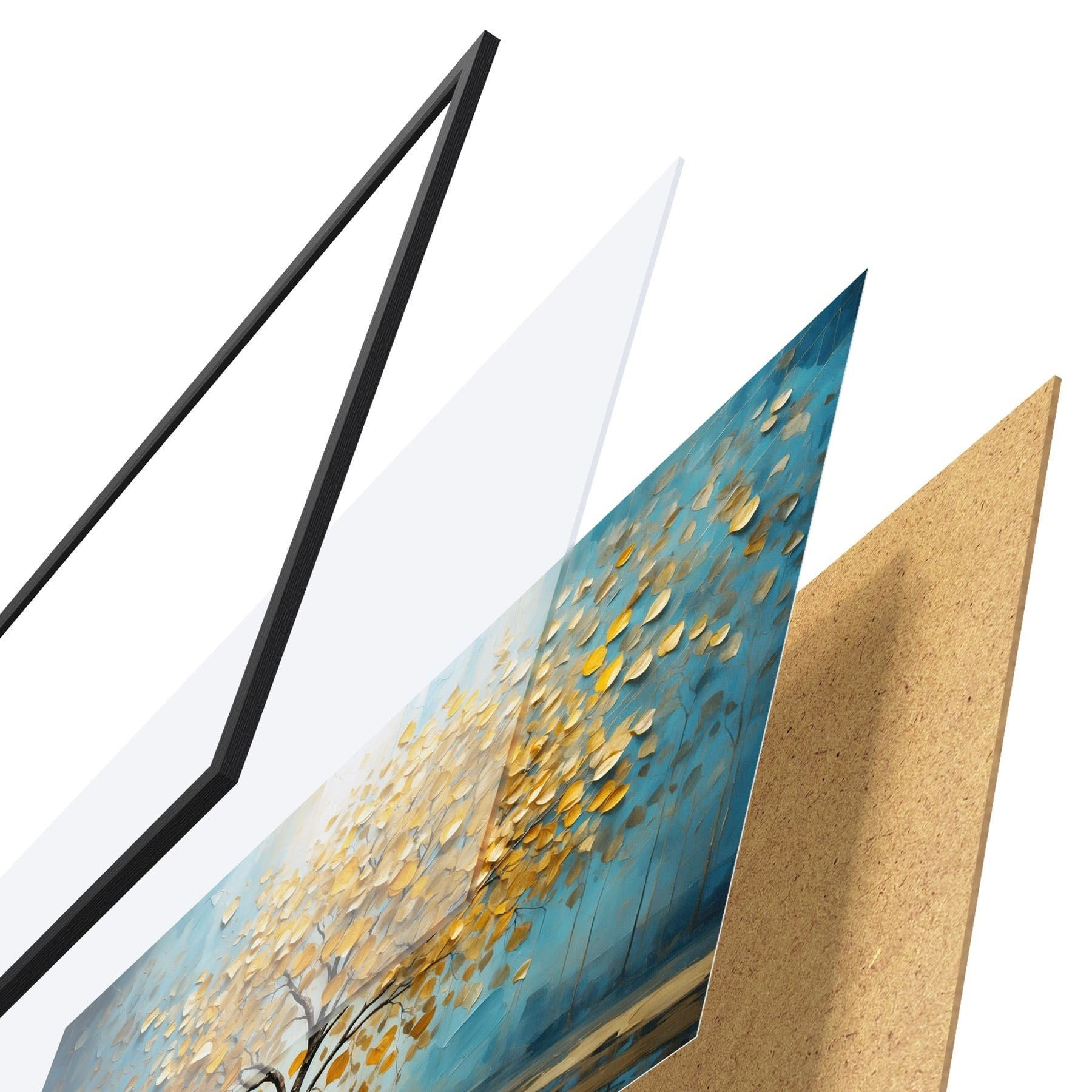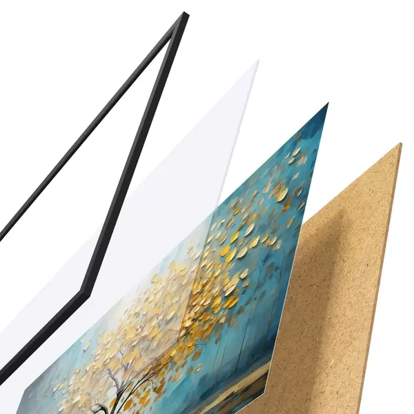 Plakatą sudaro rėmas, pleksiklas, atspausdintas vaizdas ir medžio drožlių plokštės pagrindas. Plakatą galima iš karto pakabinti ant sienos dėl kitoje pusėje esančių laikiklių.
