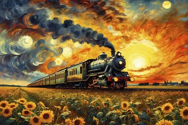 Plakatas Garo traukinys lauke su dramatišku dangumi Ne f47257