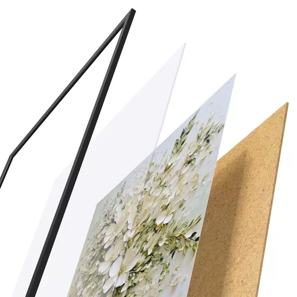 Plakatą sudaro rėmas, pleksiklas, atspausdintas vaizdas ir medžio drožlių plokštės pagrindas. Plakatą galima iš karto pakabinti ant sienos dėl kitoje pusėje esančių laikiklių.