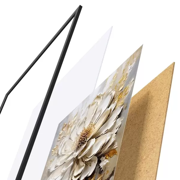 Plakatą sudaro rėmas, pleksiklas, atspausdintas vaizdas ir medžio drožlių plokštės pagrindas. Plakatą galima iš karto pakabinti ant sienos dėl kitoje pusėje esančių laikiklių.
