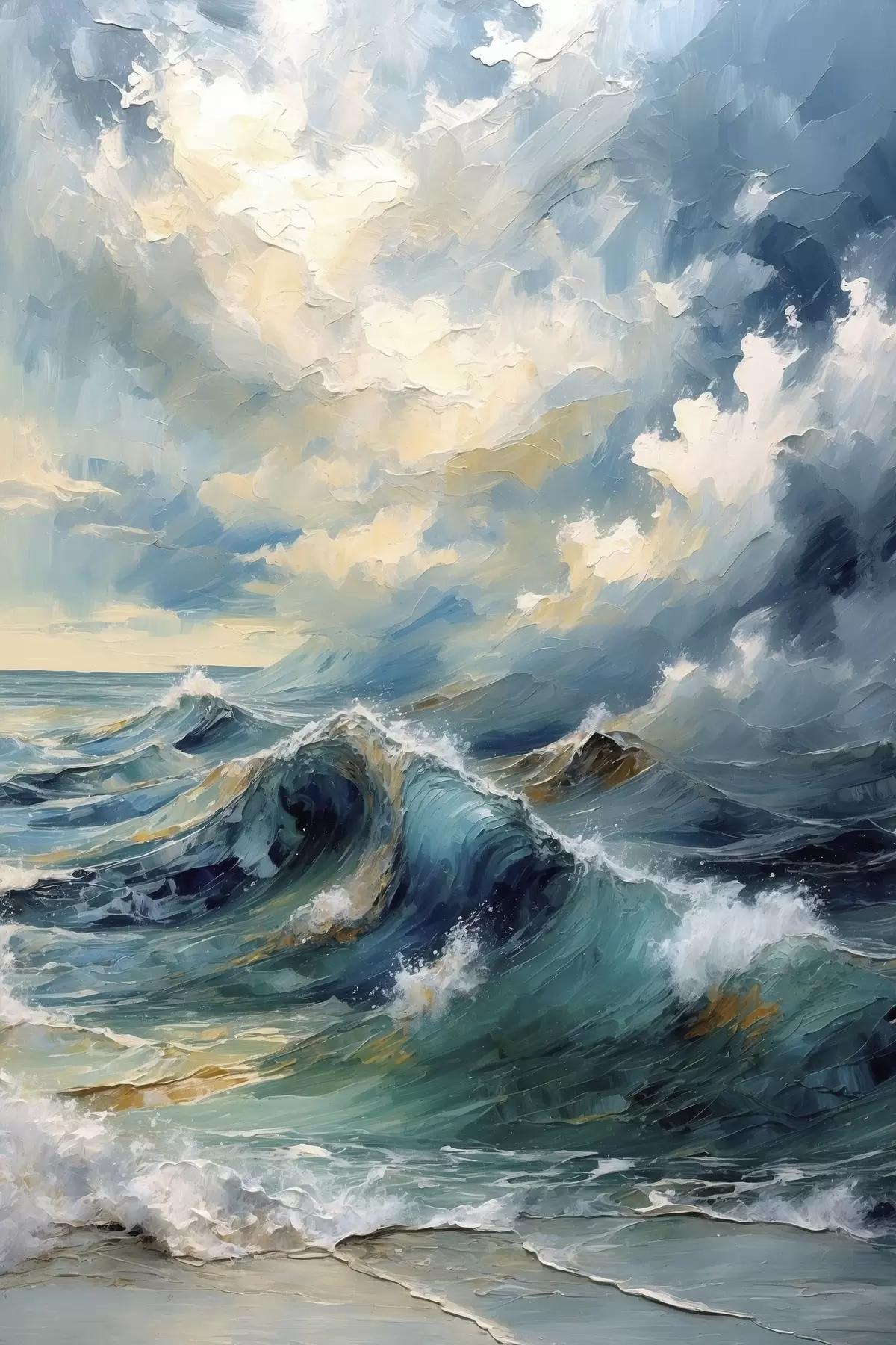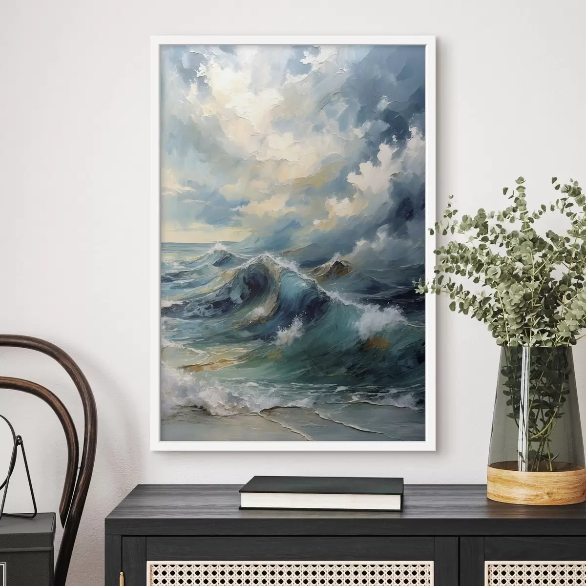 Plakatas Jūros bangos po ryškiai debesuotu dangumi Ne f47275