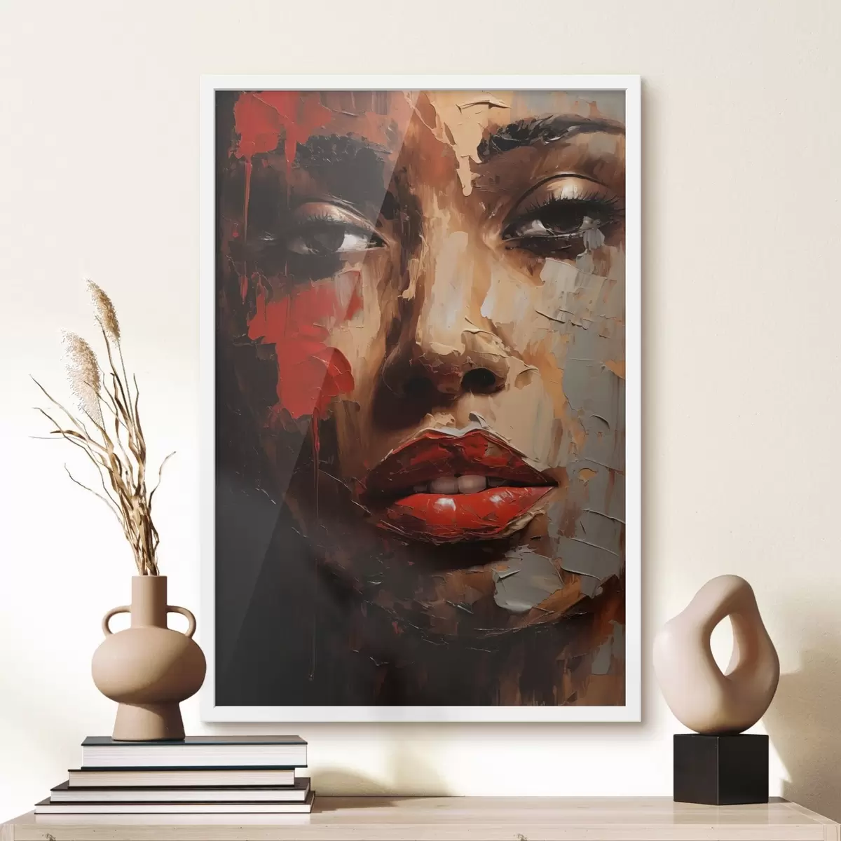 Plakatas Ryškus moters portretas su raudonais akcentais f47293