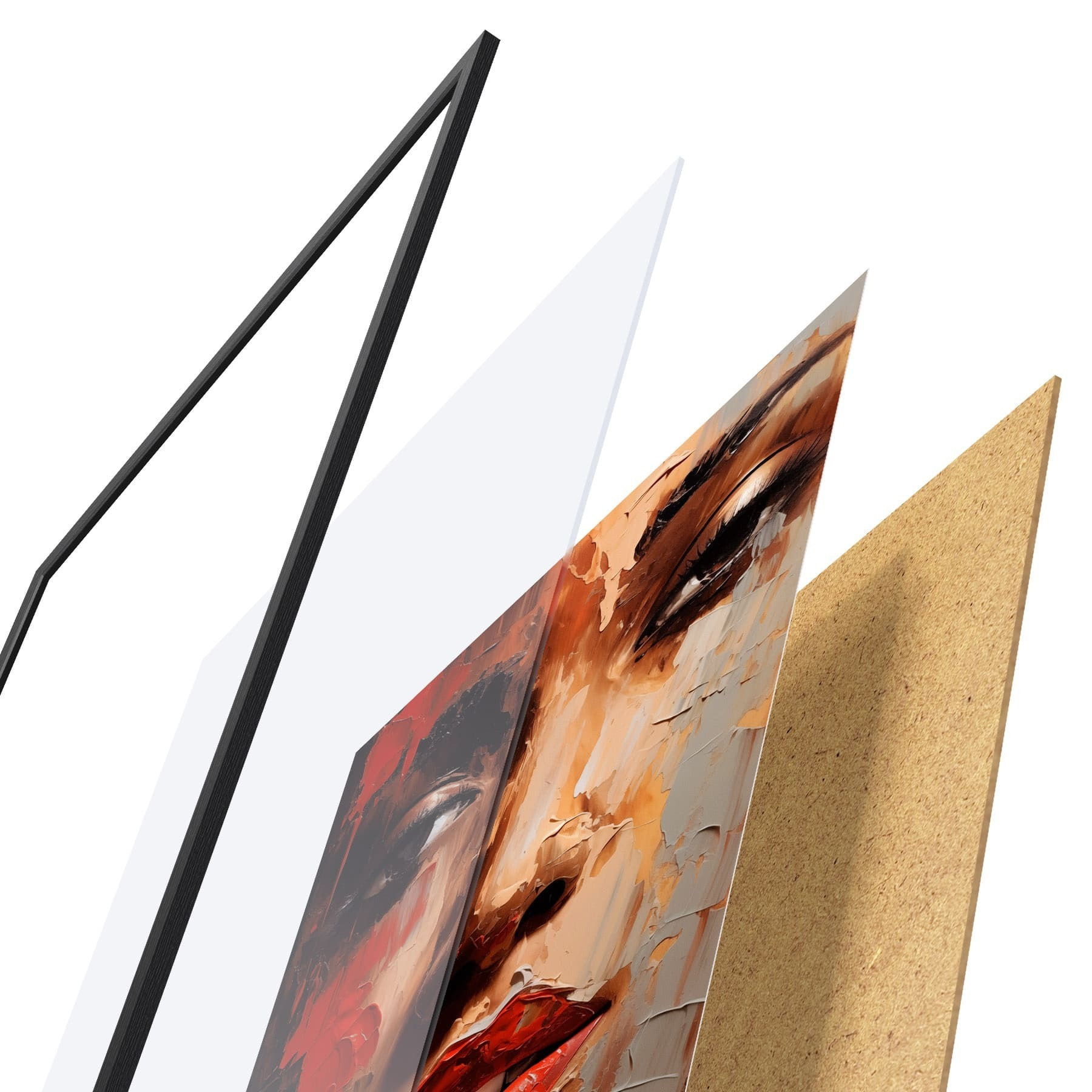 Plakatą sudaro rėmas, pleksiklas, atspausdintas vaizdas ir medžio drožlių plokštės pagrindas. Plakatą galima iš karto pakabinti ant sienos dėl kitoje pusėje esančių laikiklių.