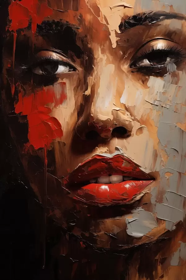 Plakatas Ryškus moters portretas su raudonais akcentais f47293