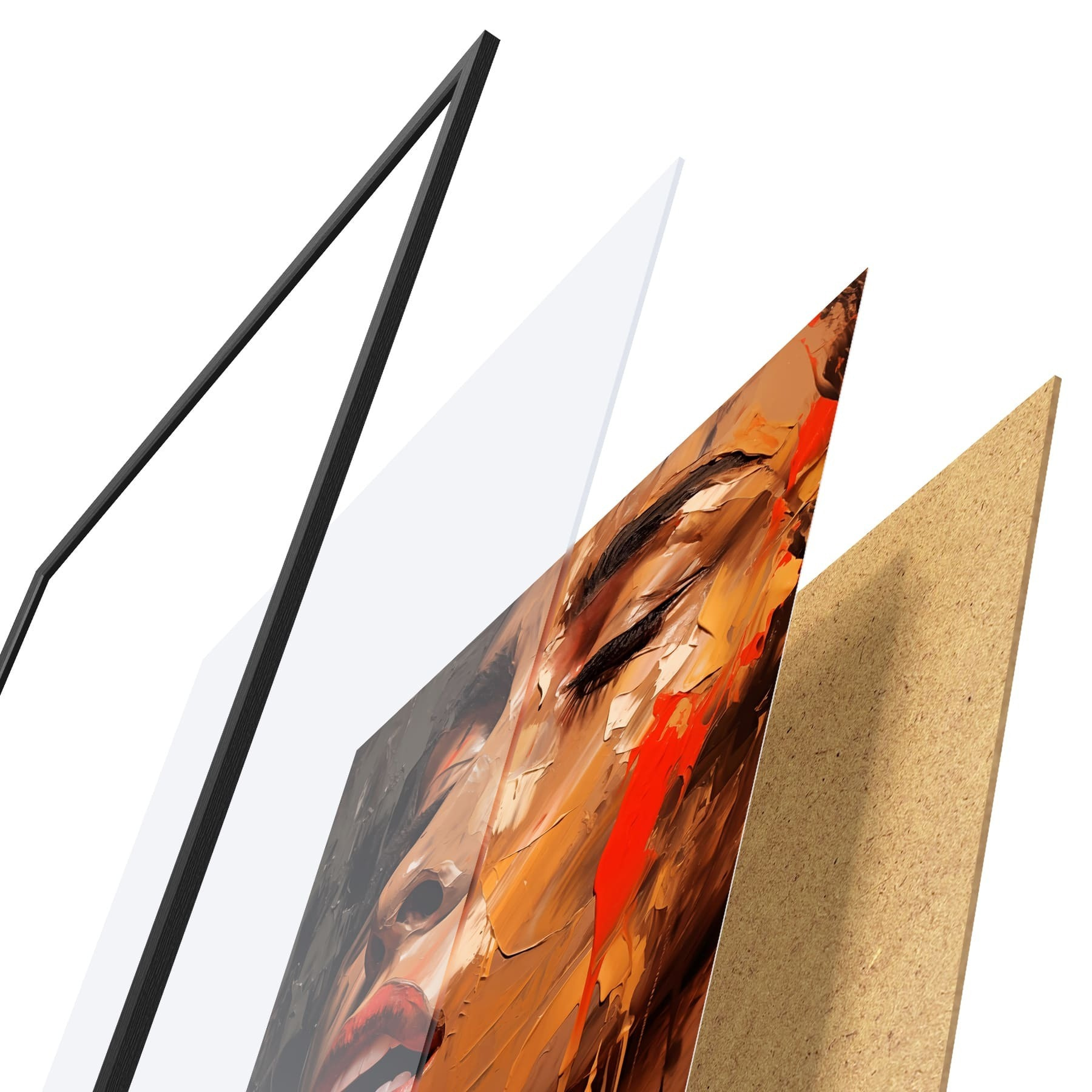 Plakatą sudaro rėmas, pleksiklas, atspausdintas vaizdas ir medžio drožlių plokštės pagrindas. Plakatą galima iš karto pakabinti ant sienos dėl kitoje pusėje esančių laikiklių.