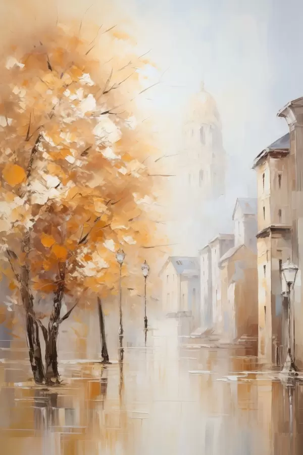 Plakatas Gatvė su medžiais ir kupolu rūke f47304
