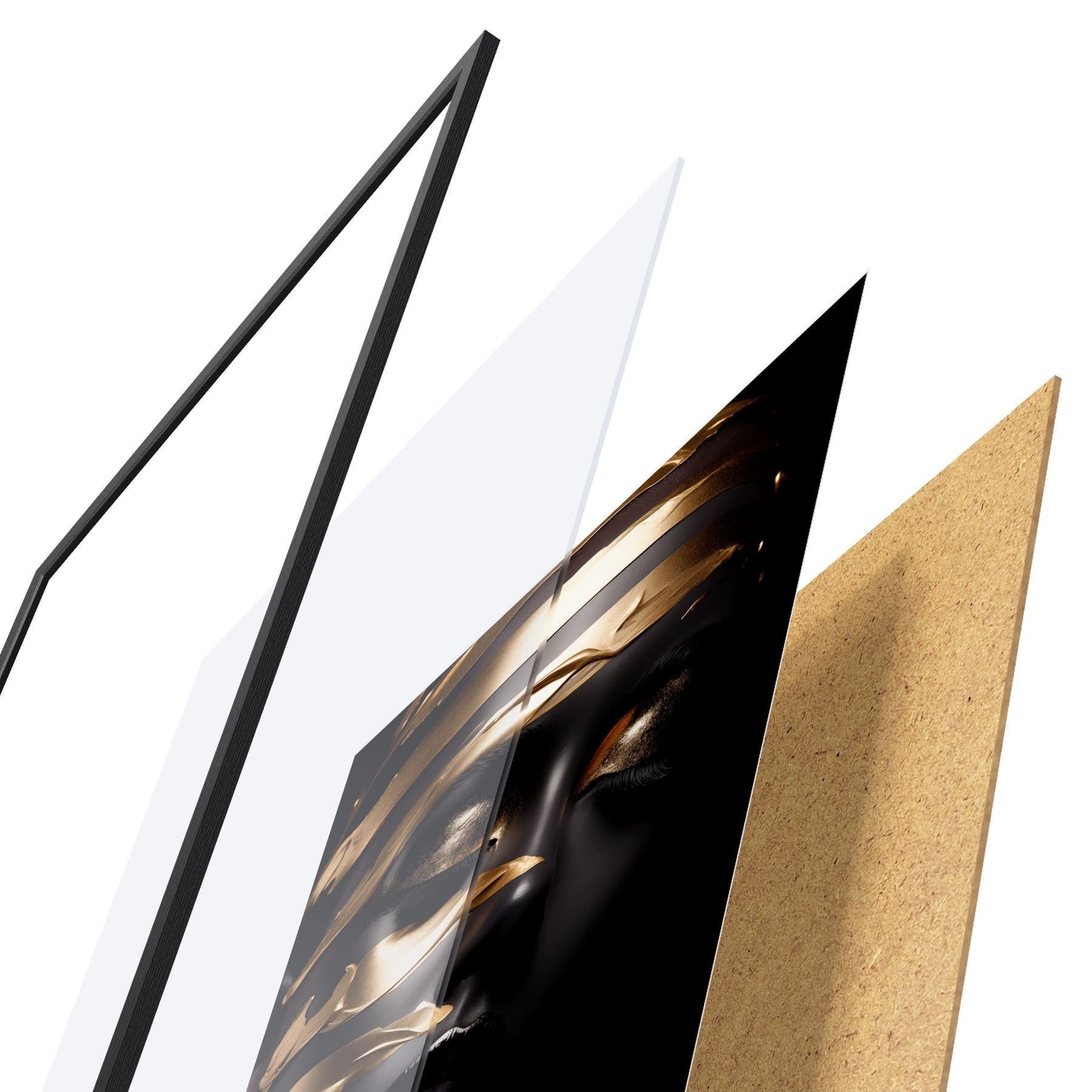 Plakatą sudaro rėmas, pleksiklas, atspausdintas vaizdas ir medžio drožlių plokštės pagrindas. Plakatą galima iš karto pakabinti ant sienos dėl kitoje pusėje esančių laikiklių.