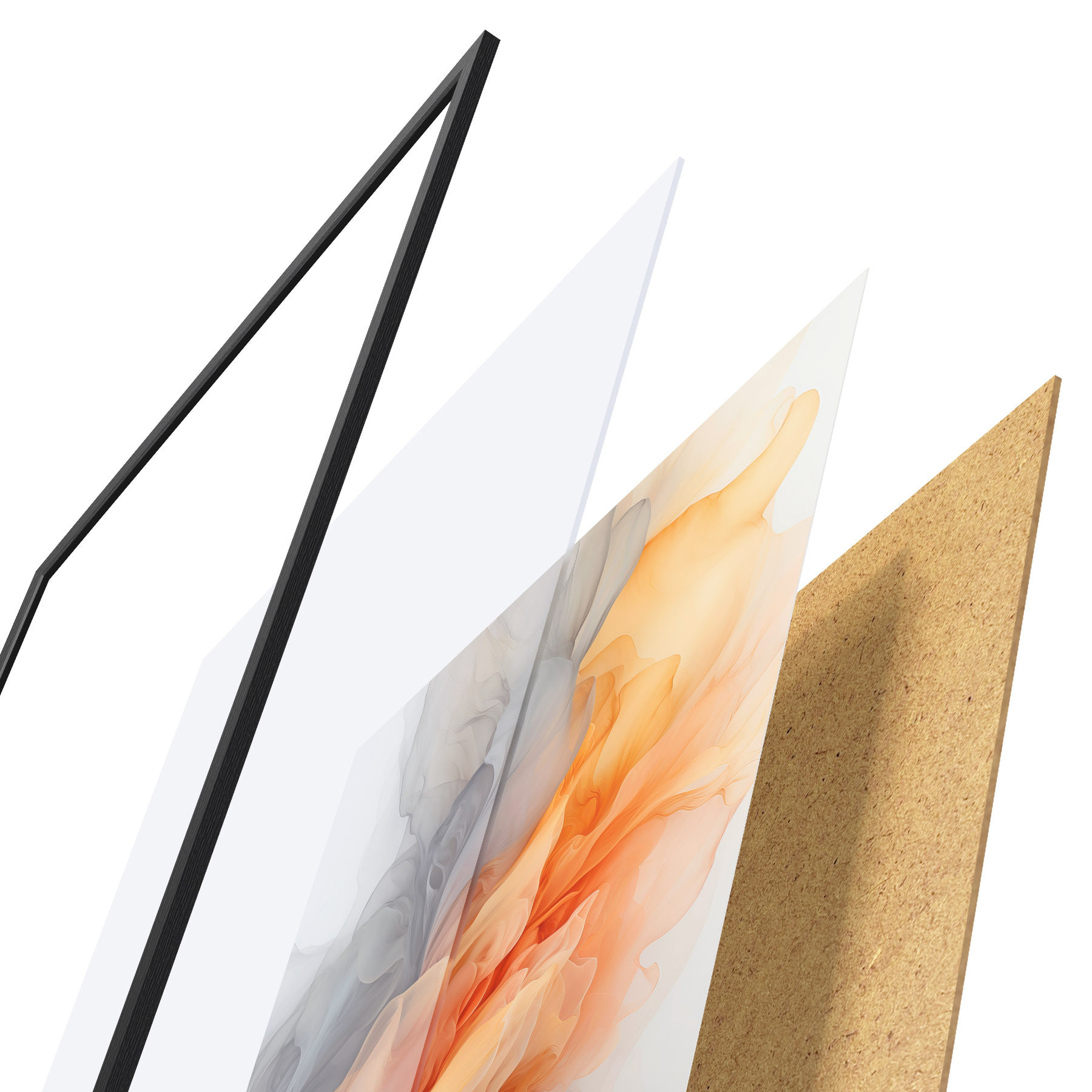 Plakatą sudaro rėmas, pleksiklas, atspausdintas vaizdas ir medžio drožlių plokštės pagrindas. Plakatą galima iš karto pakabinti ant sienos dėl kitoje pusėje esančių laikiklių.