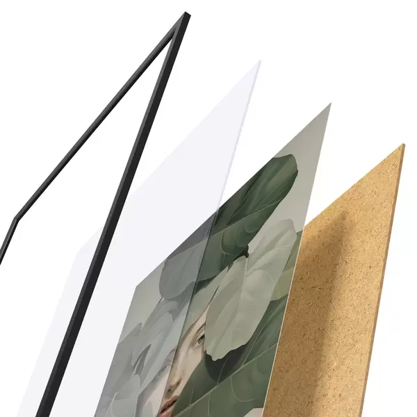Plakatą sudaro rėmas, pleksiklas, atspausdintas vaizdas ir medžio drožlių plokštės pagrindas. Plakatą galima iš karto pakabinti ant sienos dėl kitoje pusėje esančių laikiklių.