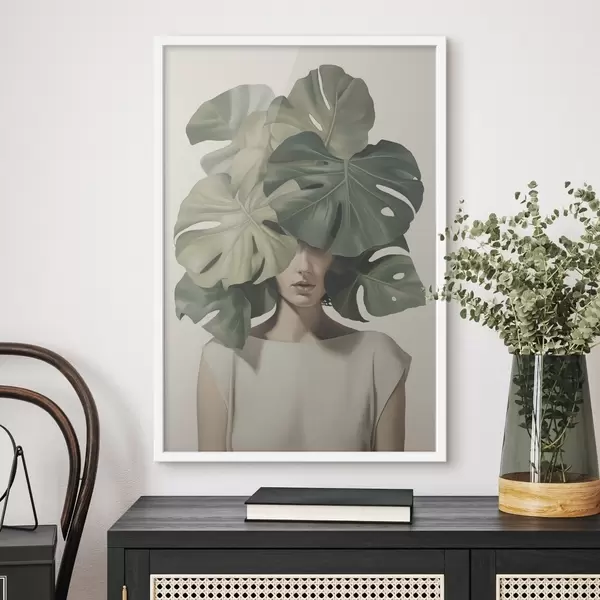 Plakatas Abstraktus merginos portretas su monstera lapais Ne f47336