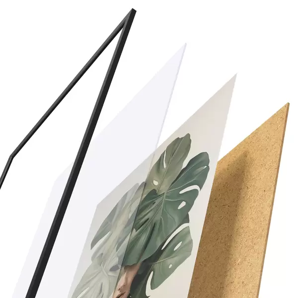 Plakatą sudaro rėmas, pleksiklas, atspausdintas vaizdas ir medžio drožlių plokštės pagrindas. Plakatą galima iš karto pakabinti ant sienos dėl kitoje pusėje esančių laikiklių.