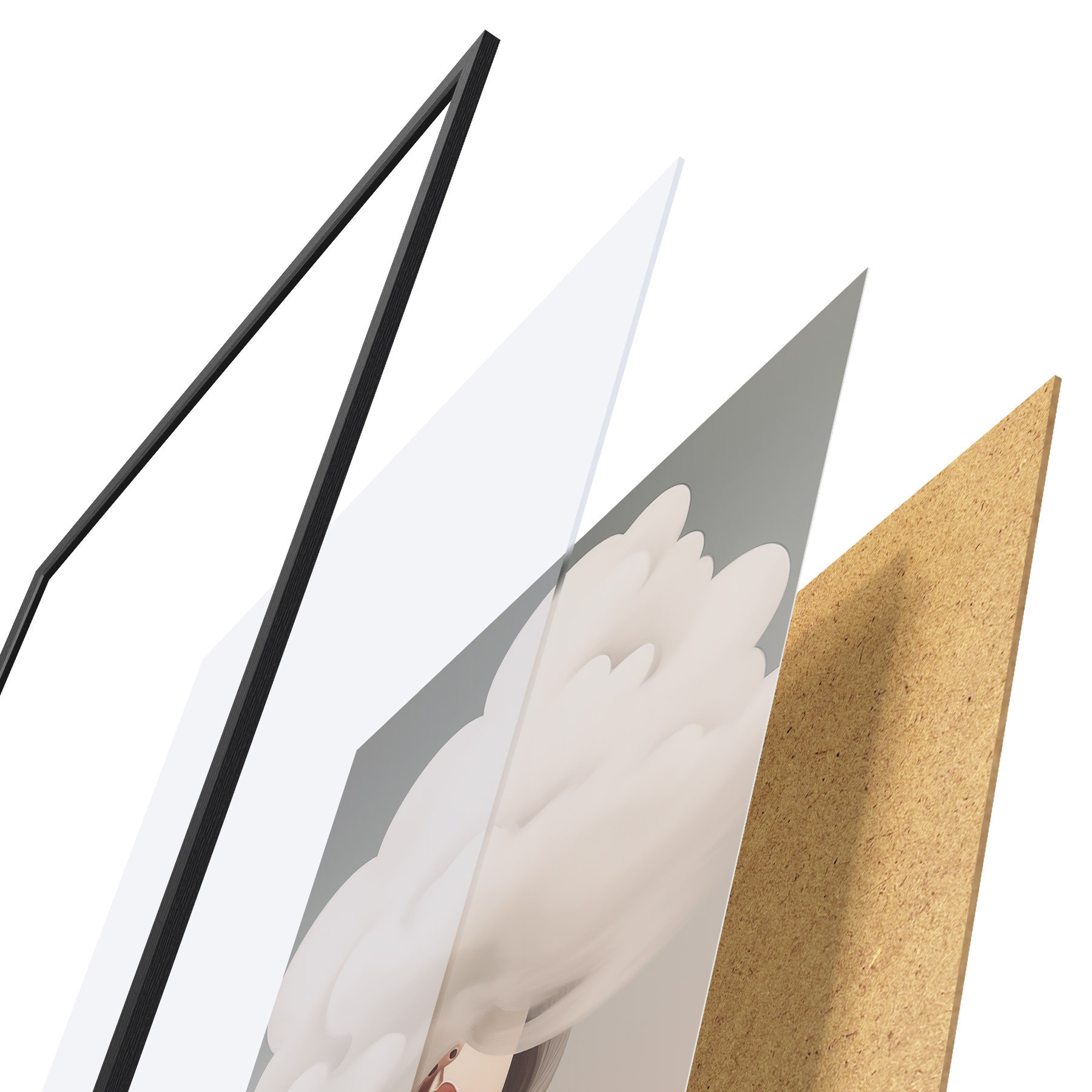Plakatą sudaro rėmas, pleksiklas, atspausdintas vaizdas ir medžio drožlių plokštės pagrindas. Plakatą galima iš karto pakabinti ant sienos dėl kitoje pusėje esančių laikiklių.