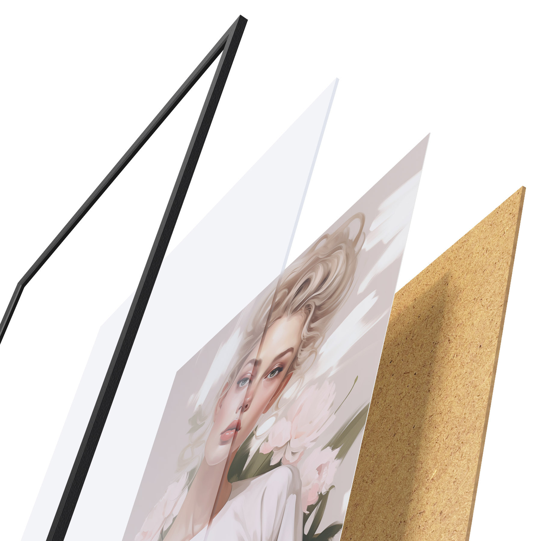 Plakatą sudaro rėmas, pleksiklas, atspausdintas vaizdas ir medžio drožlių plokštės pagrindas. Plakatą galima iš karto pakabinti ant sienos dėl kitoje pusėje esančių laikiklių.