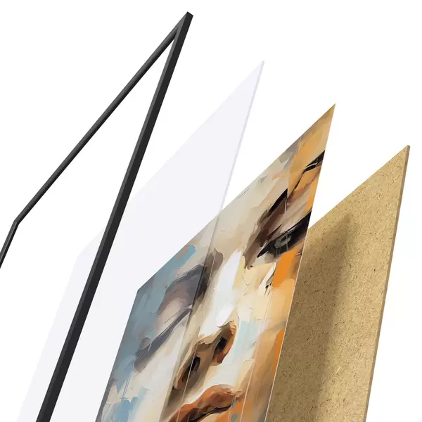 Plakatą sudaro rėmas, pleksiklas, atspausdintas vaizdas ir medžio drožlių plokštės pagrindas. Plakatą galima iš karto pakabinti ant sienos dėl kitoje pusėje esančių laikiklių.