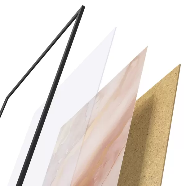 Plakatą sudaro rėmas, pleksiklas, atspausdintas vaizdas ir medžio drožlių plokštės pagrindas. Plakatą galima iš karto pakabinti ant sienos dėl kitoje pusėje esančių laikiklių.