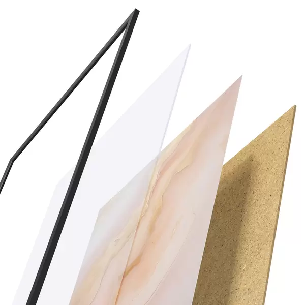 Plakatą sudaro rėmas, pleksiklas, atspausdintas vaizdas ir medžio drožlių plokštės pagrindas. Plakatą galima iš karto pakabinti ant sienos dėl kitoje pusėje esančių laikiklių.