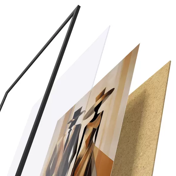 Plakatą sudaro rėmas, pleksiklas, atspausdintas vaizdas ir medžio drožlių plokštės pagrindas. Plakatą galima iš karto pakabinti ant sienos dėl kitoje pusėje esančių laikiklių.