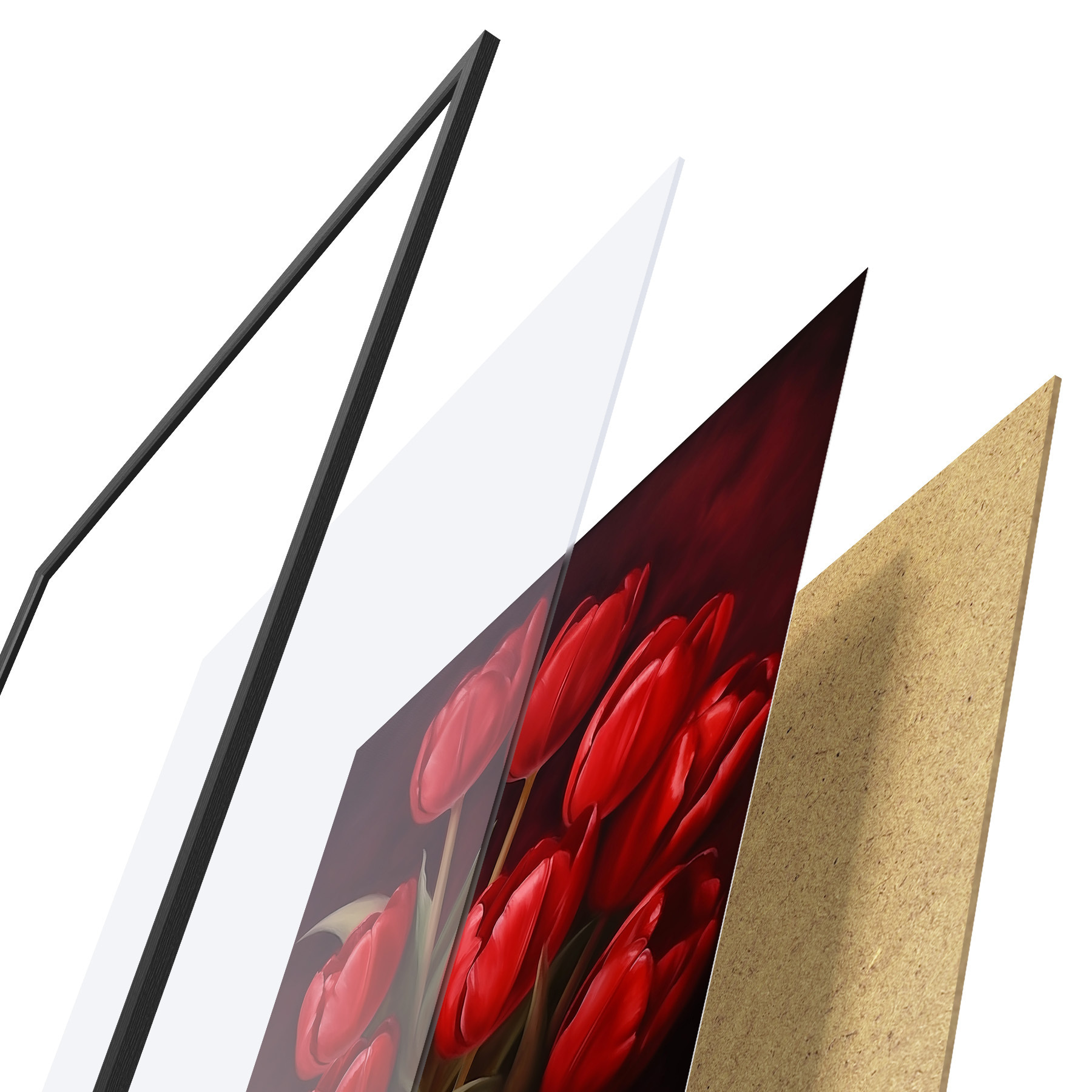 Plakatą sudaro rėmas, pleksiklas, atspausdintas vaizdas ir medžio drožlių plokštės pagrindas. Plakatą galima iš karto pakabinti ant sienos dėl kitoje pusėje esančių laikiklių.