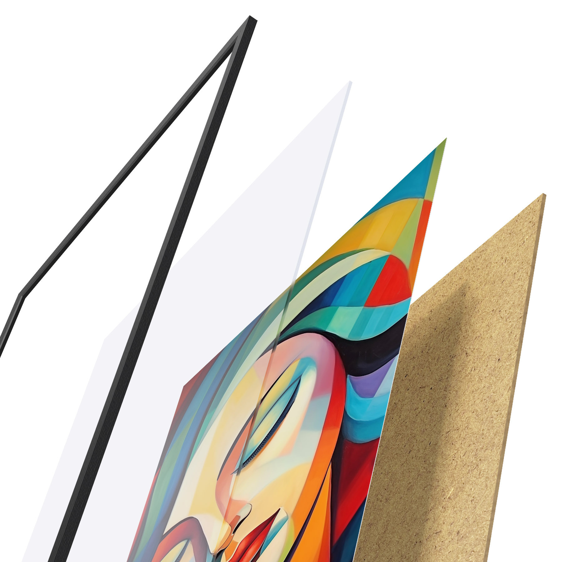 Plakatą sudaro rėmas, pleksiklas, atspausdintas vaizdas ir medžio drožlių plokštės pagrindas. Plakatą galima iš karto pakabinti ant sienos dėl kitoje pusėje esančių laikiklių.
