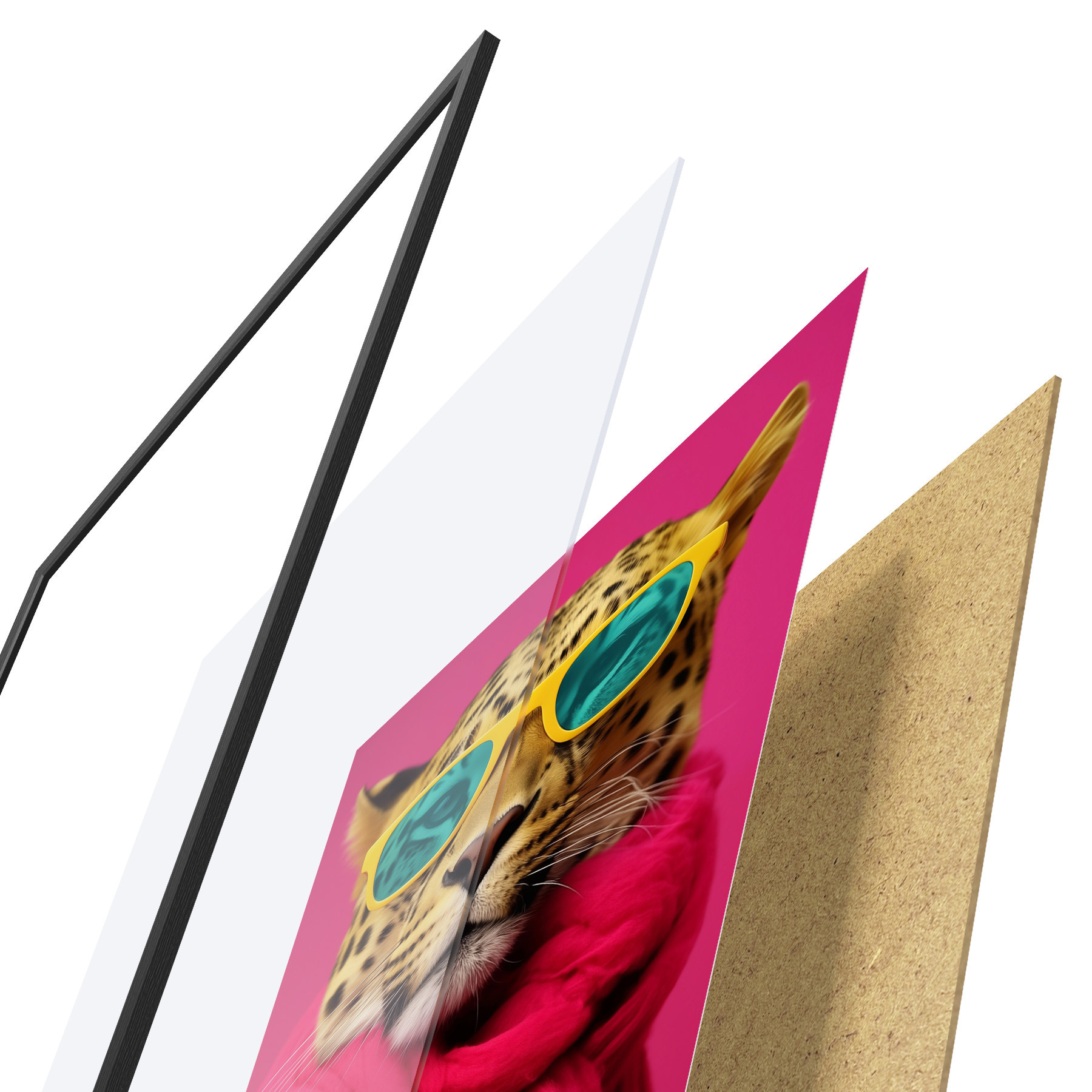 Plakatą sudaro rėmas, pleksiklas, atspausdintas vaizdas ir medžio drožlių plokštės pagrindas. Plakatą galima iš karto pakabinti ant sienos dėl kitoje pusėje esančių laikiklių.