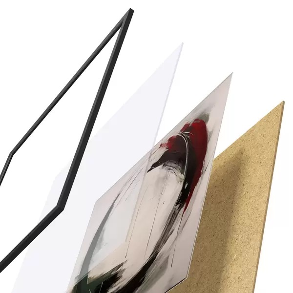 Plakatą sudaro rėmas, pleksiklas, atspausdintas vaizdas ir medžio drožlių plokštės pagrindas. Plakatą galima iš karto pakabinti ant sienos dėl kitoje pusėje esančių laikiklių.