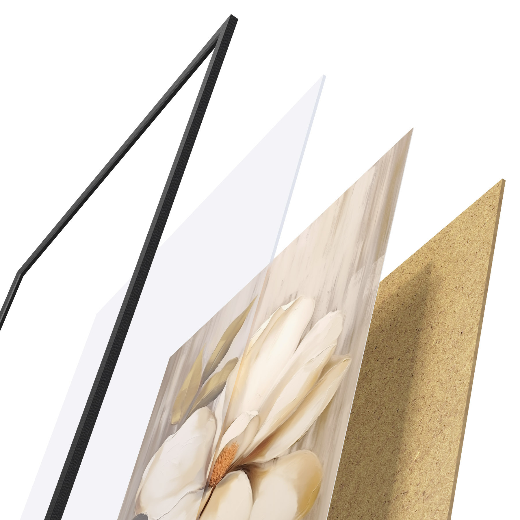Plakatą sudaro rėmas, pleksiklas, atspausdintas vaizdas ir medžio drožlių plokštės pagrindas. Plakatą galima iš karto pakabinti ant sienos dėl kitoje pusėje esančių laikiklių.