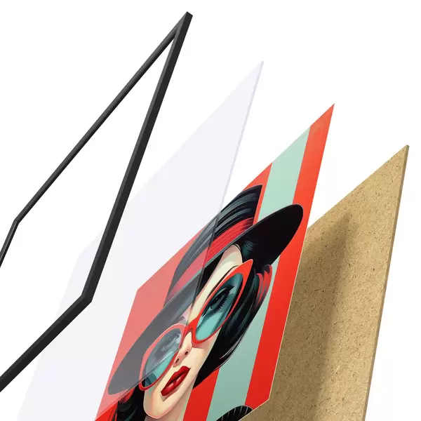 Plakatą sudaro rėmas, pleksiklas, atspausdintas vaizdas ir medžio drožlių plokštės pagrindas. Plakatą galima iš karto pakabinti ant sienos dėl kitoje pusėje esančių laikiklių.