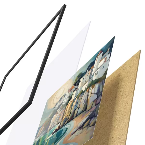 Plakatą sudaro rėmas, pleksiklas, atspausdintas vaizdas ir medžio drožlių plokštės pagrindas. Plakatą galima iš karto pakabinti ant sienos dėl kitoje pusėje esančių laikiklių.