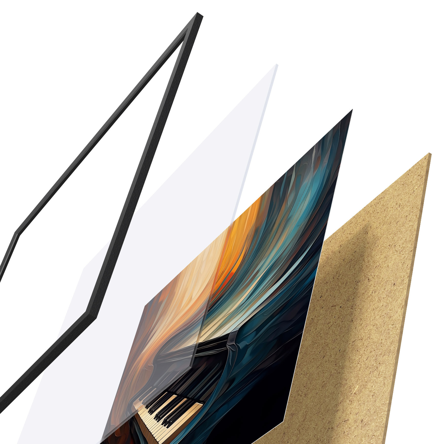 Plakatą sudaro rėmas, pleksiklas, atspausdintas vaizdas ir medžio drožlių plokštės pagrindas. Plakatą galima iš karto pakabinti ant sienos dėl kitoje pusėje esančių laikiklių.