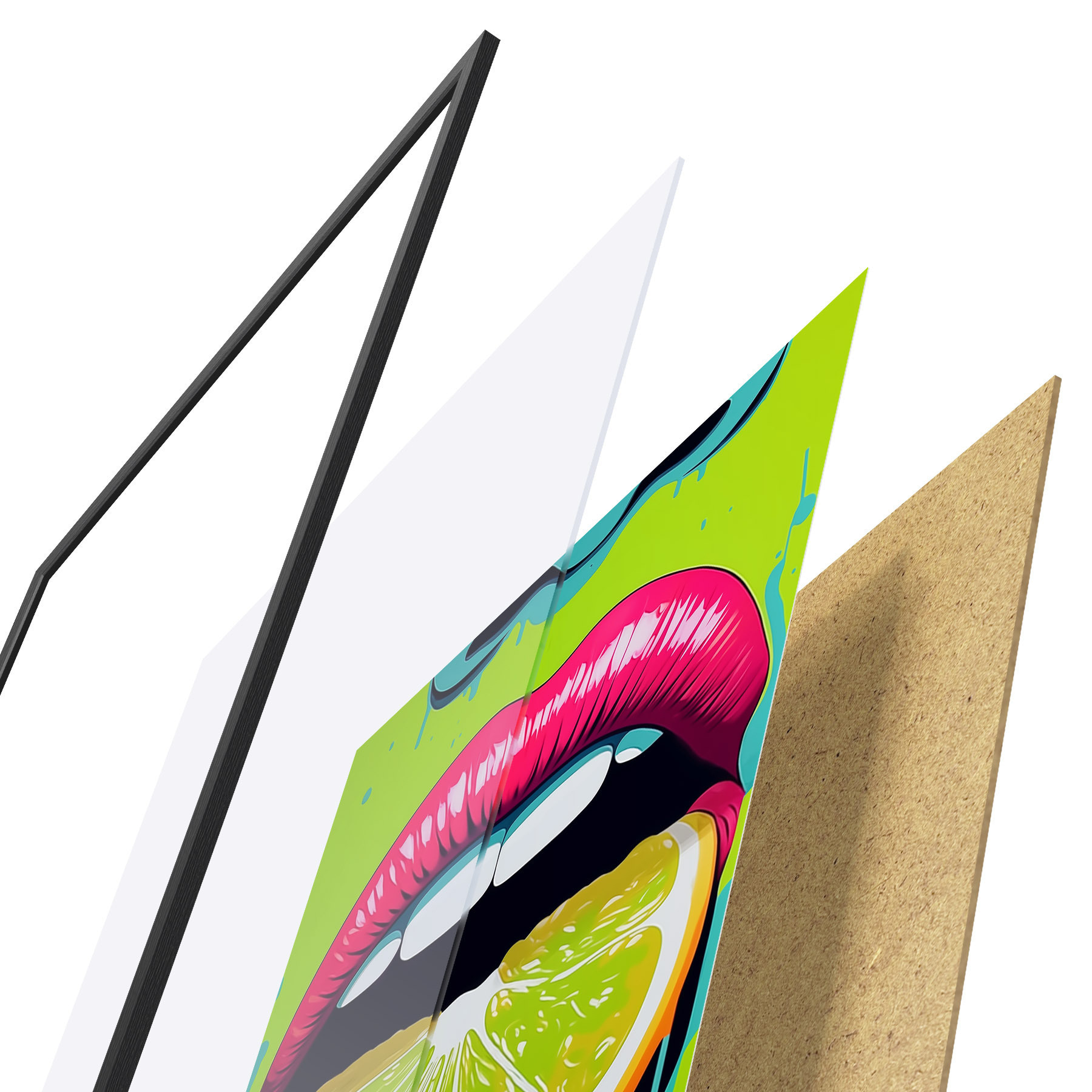 Plakatą sudaro rėmas, pleksiklas, atspausdintas vaizdas ir medžio drožlių plokštės pagrindas. Plakatą galima iš karto pakabinti ant sienos dėl kitoje pusėje esančių laikiklių.