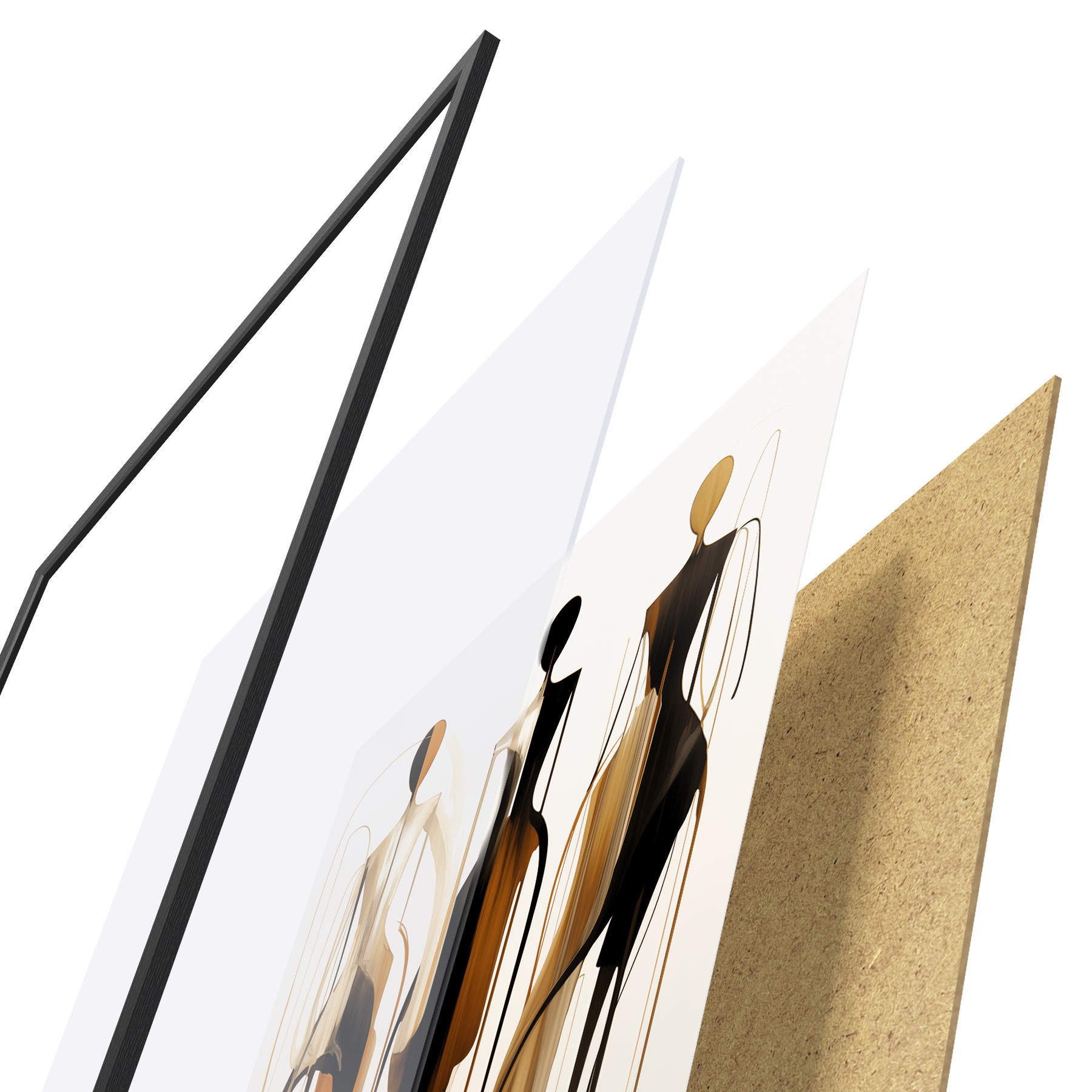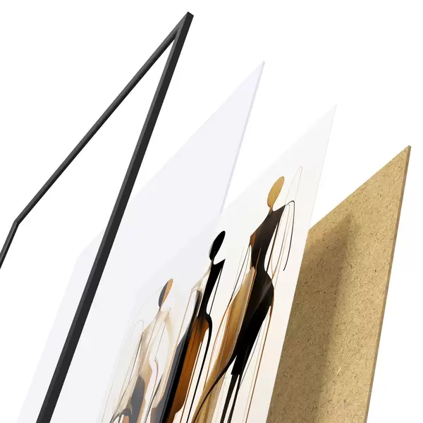Plakatą sudaro rėmas, pleksiklas, atspausdintas vaizdas ir medžio drožlių plokštės pagrindas. Plakatą galima iš karto pakabinti ant sienos dėl kitoje pusėje esančių laikiklių.