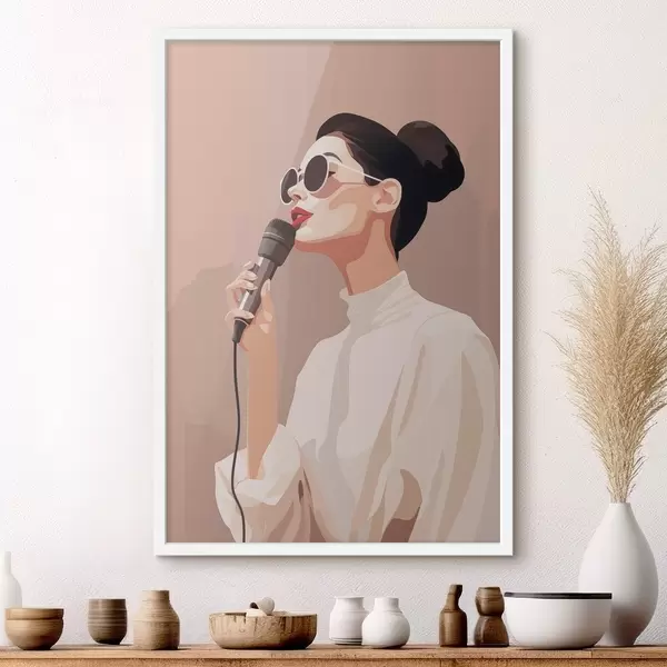 Plakatas Mergina su mikrofonu f47409
