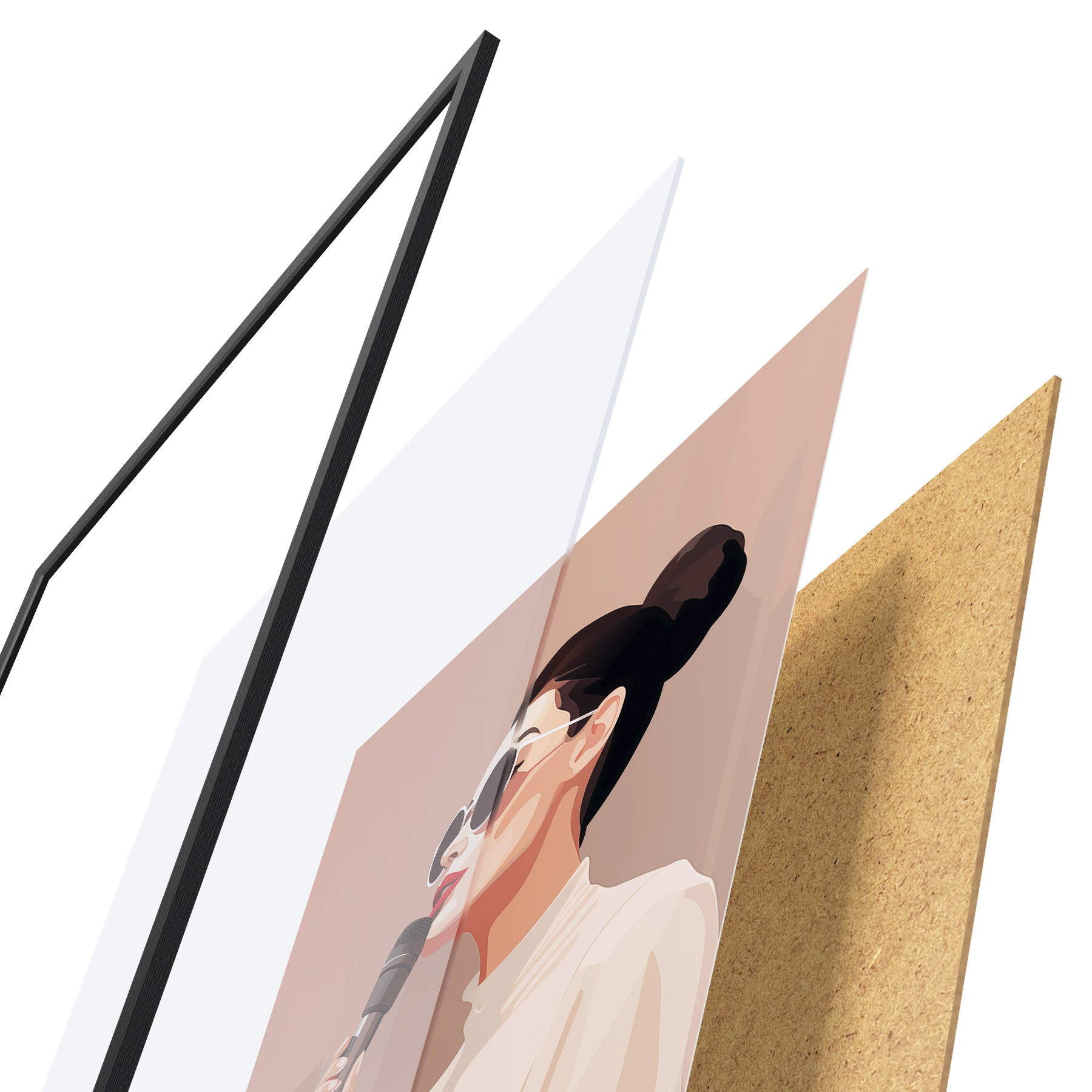 Plakatą sudaro rėmas, pleksiklas, atspausdintas vaizdas ir medžio drožlių plokštės pagrindas. Plakatą galima iš karto pakabinti ant sienos dėl kitoje pusėje esančių laikiklių.