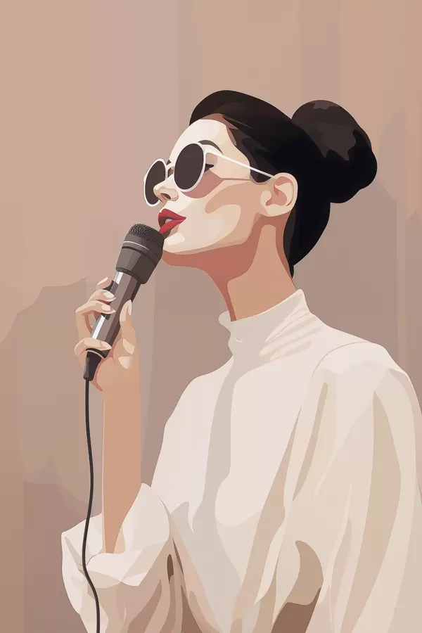 Plakatas Mergina su mikrofonu f47409
