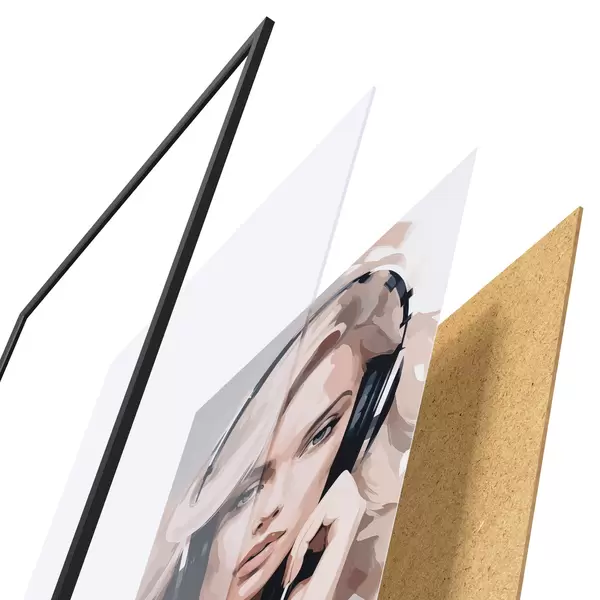 Plakatą sudaro rėmas, pleksiklas, atspausdintas vaizdas ir medžio drožlių plokštės pagrindas. Plakatą galima iš karto pakabinti ant sienos dėl kitoje pusėje esančių laikiklių.