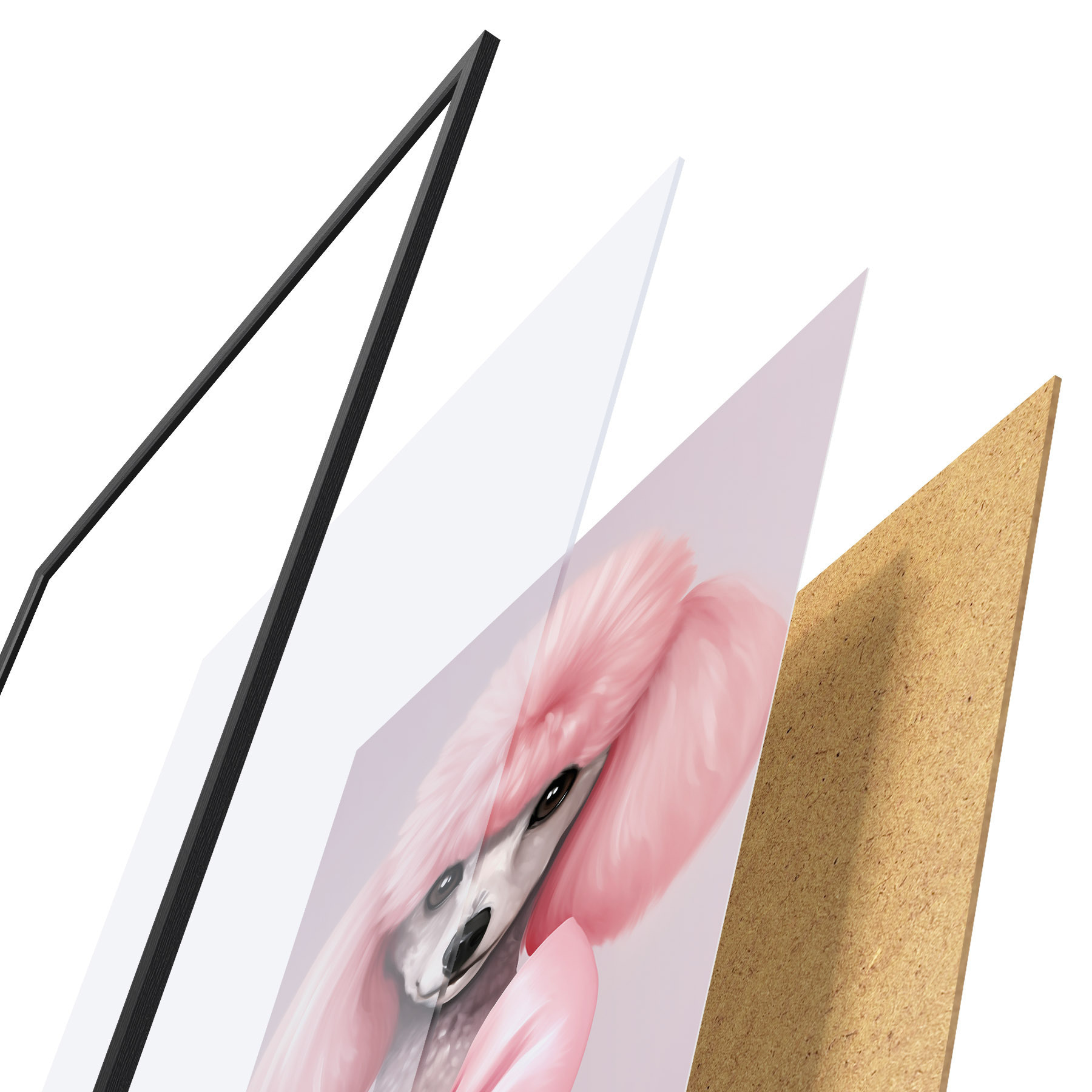 Plakatą sudaro rėmas, pleksiklas, atspausdintas vaizdas ir medžio drožlių plokštės pagrindas. Plakatą galima iš karto pakabinti ant sienos dėl kitoje pusėje esančių laikiklių.